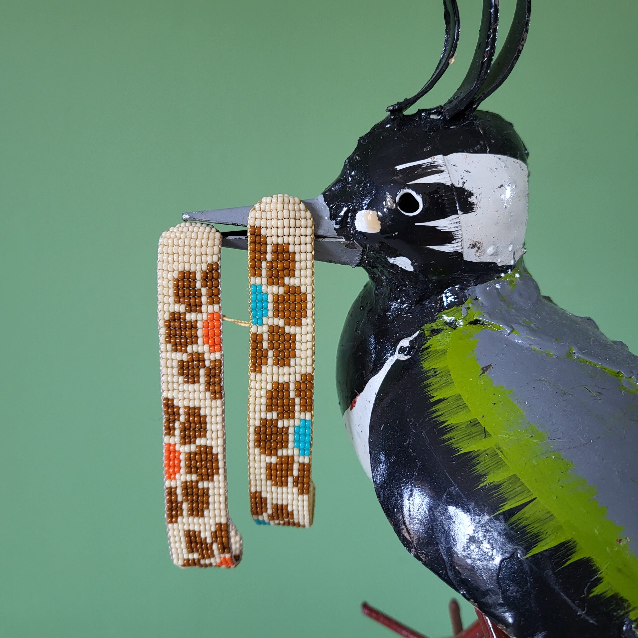 Ik kwam dit leuke bloemenpatroon tegen op Pinterest. Eenvoud en toch speciaal. Dit soort armbandjes hebben niet veel nodig. Ik heb bewust gekozen voor een eenvoud aan kleuren. Twee tinten die dicht op elkaar liggen en een kleur die eruit springt.